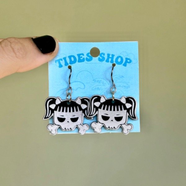 Par de aros con dije de acrílico, anzuelos de acero quirúrgico y frufrus de silicona.