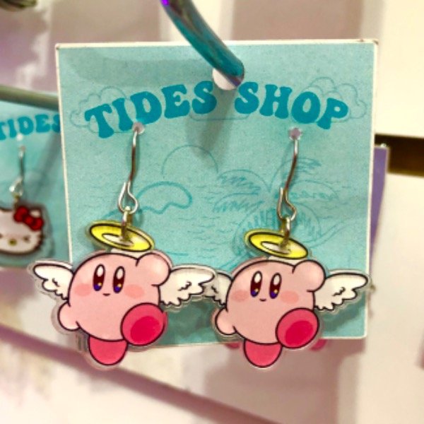 par de aros con anzuelo de acero quirúrgico, dije de acrílico sublimado y frufru de silicona.