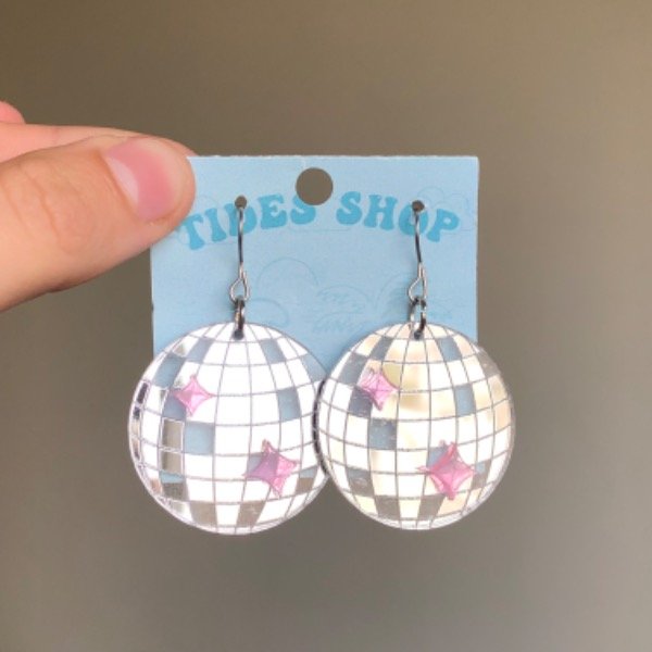 Par de aros con dije de acrílico, anzuelo de acero quirúrgico y Frufru de silicona.