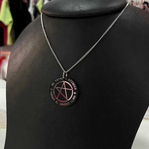Material: Cadena de acero quirurgico y dije de acrílico bicapa.
